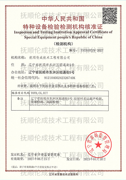 鎶氶『浼︽垚鎶鏈伐紼嬫湁闄愬叕鍙告垚绔嬩簬1996騫?鏈?0鏃ワ紝鏄叿鏈夌嫭绔嬫硶浜鴻祫鏍肩殑媯楠屾嫻嬫湁闄愯矗浠誨叕鍙搞傚叕鍙鎬笓涓氫粠浜嬬壒縐嶈澶囧帇鍔涘鍣ㄧ殑媯楠屾嫻嬶紙鍚悊鍖栬瘯楠岋級宸ョ▼銆傚叕鍙稿叿澶囩壒縐嶈澶囥佸緩璁懼伐紼嬨佺煶娌瑰寲宸ョ瓑琛屼笟鐨勬棤鎹熸楠屾嫻嬭祫鏍鹼紝鍏堝悗鍙栧緱杈藉畞鐪佸競鍦虹洃鐫g鐞嗗眬棰佸彂鐨勨滅壒縐嶈澶囨楠屾嫻嬫満鏋勬牳鍑嗚瘉鈥濓紱杈藉畞鐪佸競鍦虹洃鐫g鐞嗗眬棰佸彂鐨勨滄楠屾嫻嬫満鏋勮祫璐ㄨ瀹氳瘉涔︹濓紙CMA)錛涜窘瀹佺渷鐢熸佺幆澧冨巺棰佸彂鐨勨滆緪灝勫畨鍏ㄨ鍙瘉鈥濃︹?
